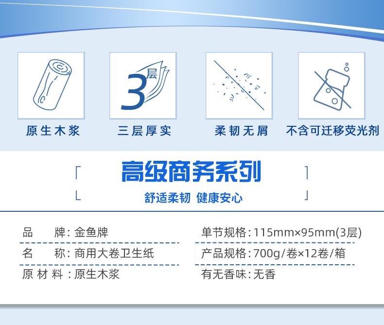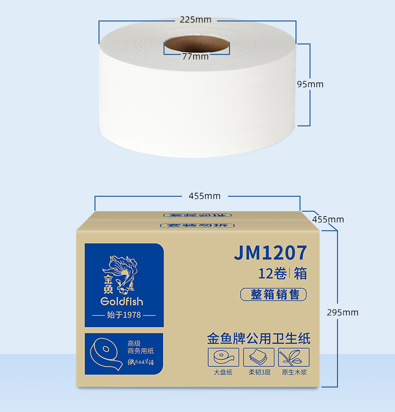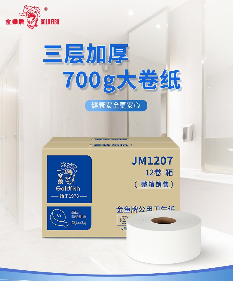金鱼1207纯木浆3层大卷纸3层700g/卷 自营