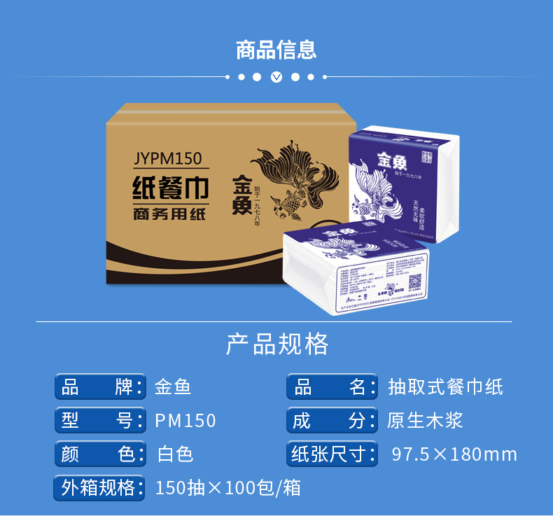 金鱼JY61222纯木浆双层餐巾纸100张/包 自营