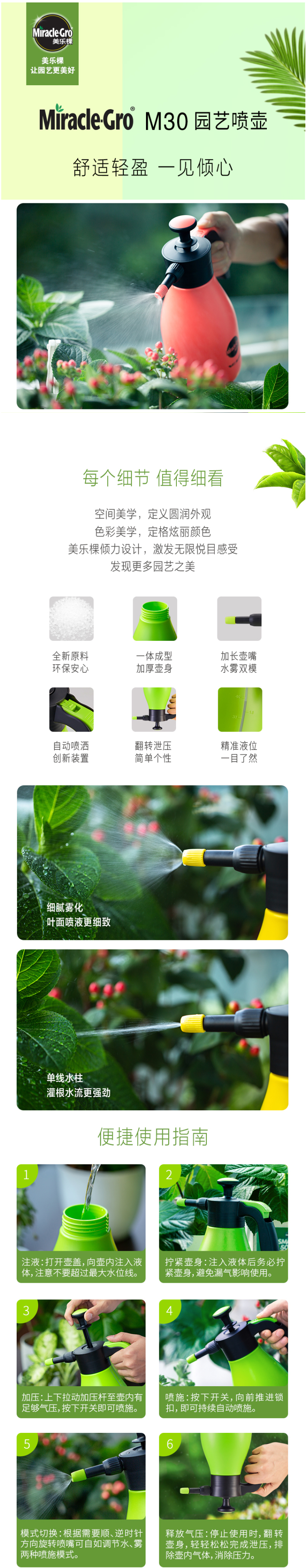 美乐棵M30自动喷洒喷壶2L高压喷水壶喷雾器 自营