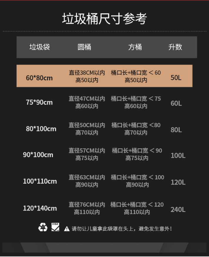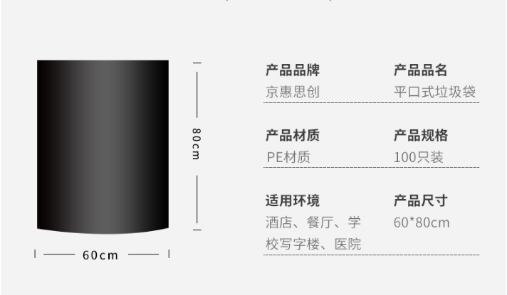 京惠思创JH0116加厚平口垃圾袋大号商用物业办公60*80cm100只黑色 自营