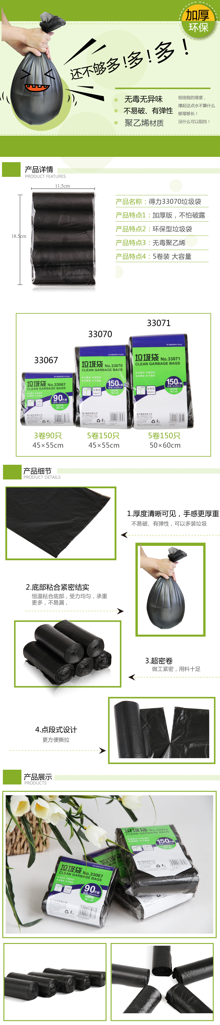 得力33070垃圾袋黑色(30个/卷5卷/包) 自营