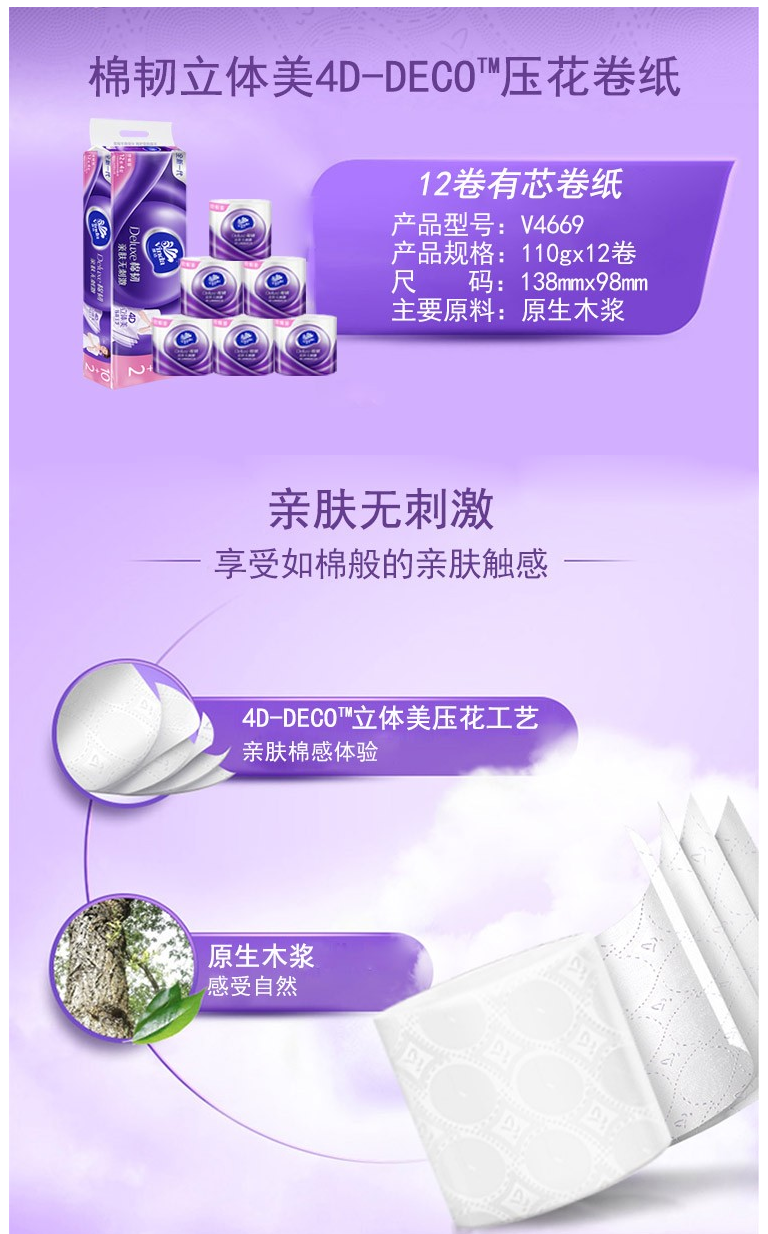 维达(Vinda)V4669棉韧卷纸110g*12卷/提6提/箱 自营