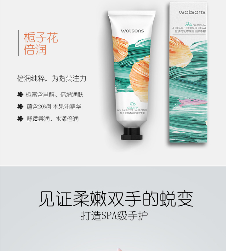 屈臣氏栀子花乳木果补水保湿护手霜40g 自营