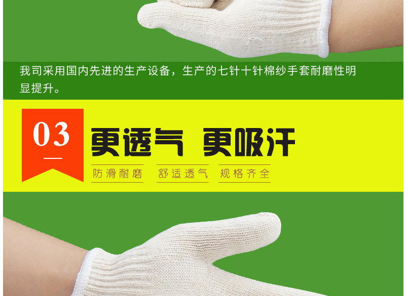 百舸棉线细纱加密加厚耐磨劳防手套常规耐磨120副装 自营