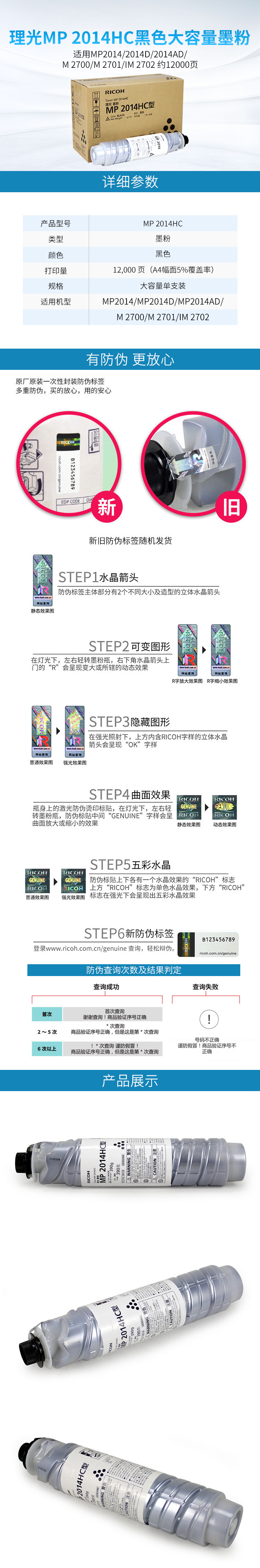 理光原装耗材MP2014C HC型黑色墨粉盒碳粉 适用理光2014、D、AD、N、M2700 MP 2014C小容量(约4000页) 1只 自营