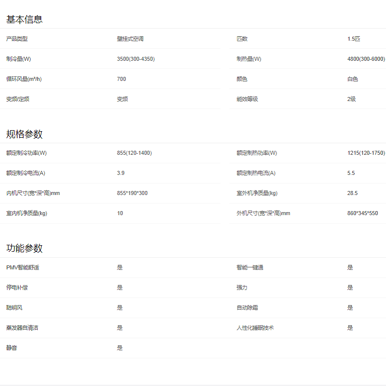 海尔空调壁挂机KFR-35GW/20MCA82(二级能效冷暖变频1.5匹) 自营