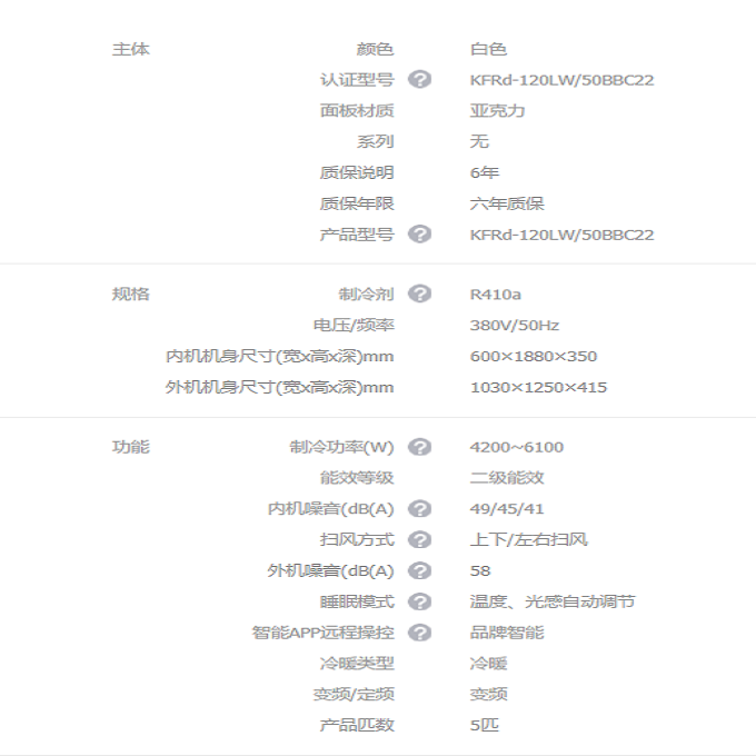 海尔空调柜机KFRd-120LW/50BBC22(二级能效冷暖变频5匹) 自营