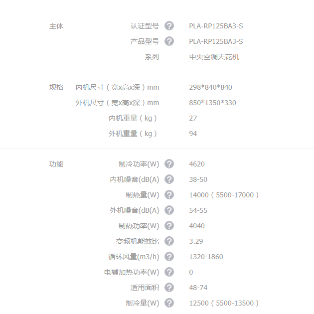 三菱电机PLA-RP125BA3-S一拖一中央空调(一级能效冷暖变频5匹) 自营