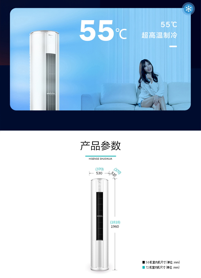 海信空调柜机2匹KFR-50LW/G880X-X1(一级能效冷暖变频2匹) 自营