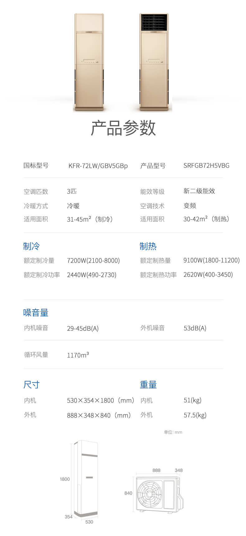 三菱重工空调SRFGB72H5VBG(二级能效冷暖变频3匹) 自营