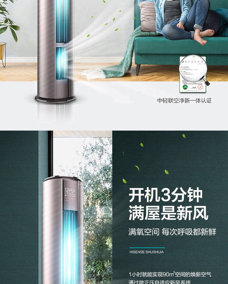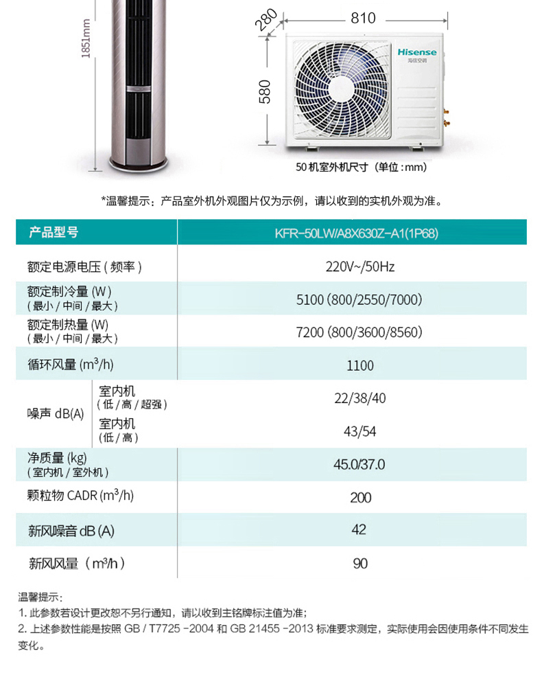 海信空调柜机2匹KFR-50LW/A8X630Z-A1(1P68)(一级能效冷暖变频2匹) 自营
