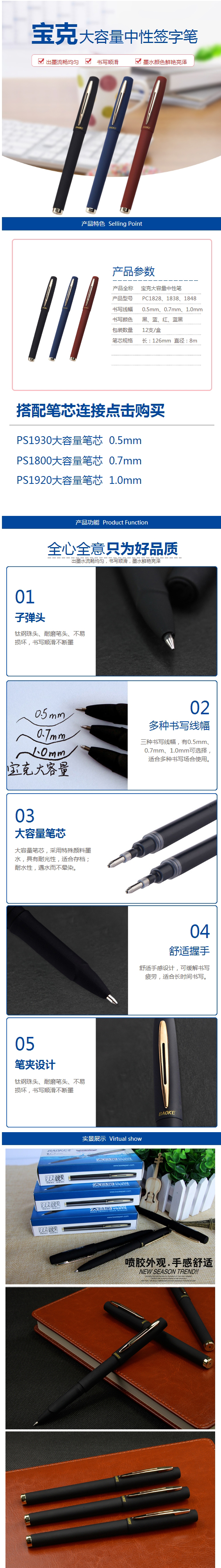 宝克PC1848大容量中性签字笔1.0mm红色12支/盒 自营