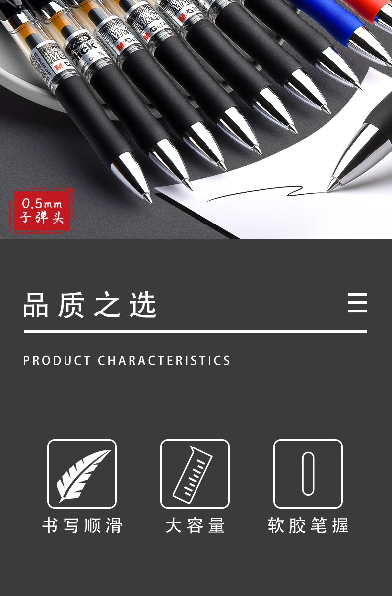 晨光按动中性笔签字笔水性笔按动子弹头经典办公笔0.5mm配套黑色笔芯G-5/单支 自营