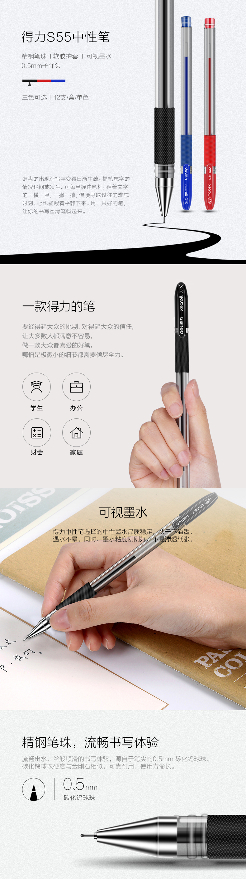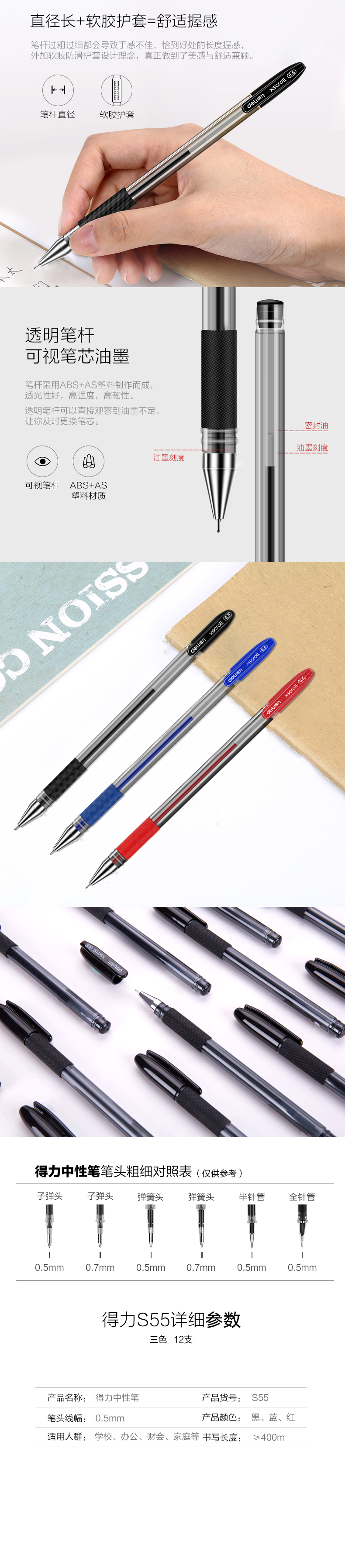得力S55红色中性笔碳素笔水笔签字笔办公文具书写笔0.5MM单支装 自营