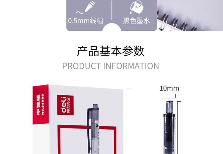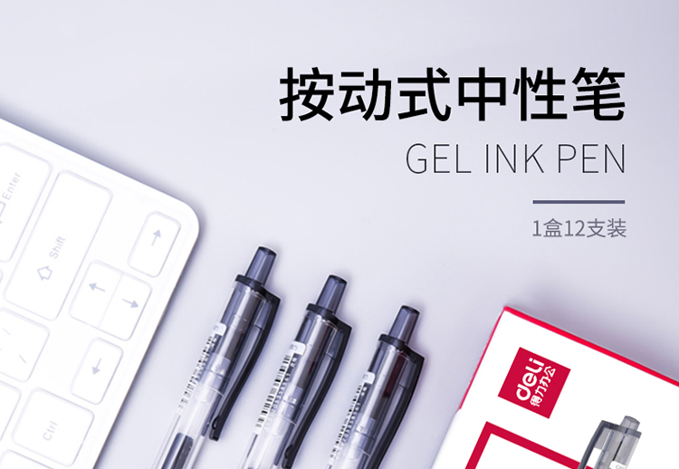 得力(deli)SG-S801速干按动中性笔.5mm子弹头12支/盒