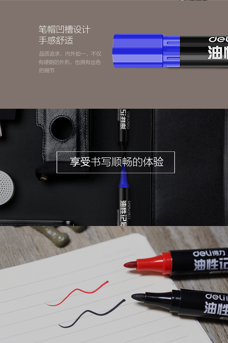 Deli得力单头记号笔6821红色1.5mm10支/盒 自营