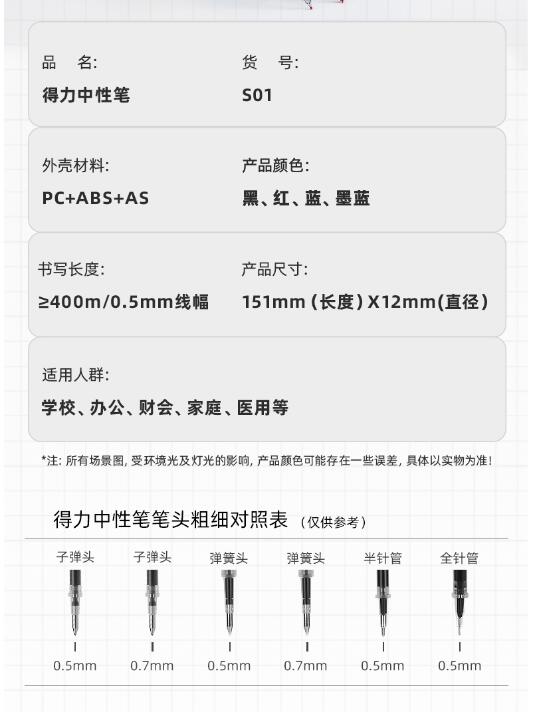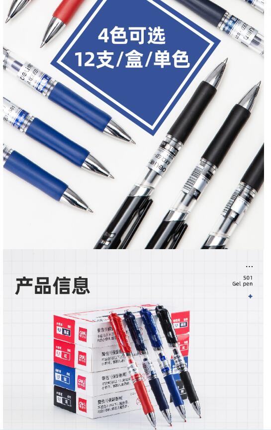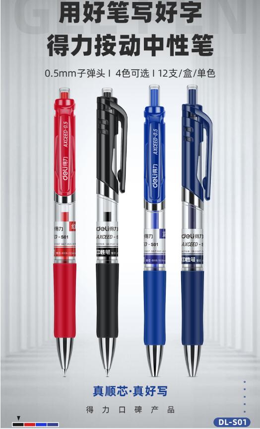 Deli得力S01.5mm经典大方中性笔红色12支/盒 自营