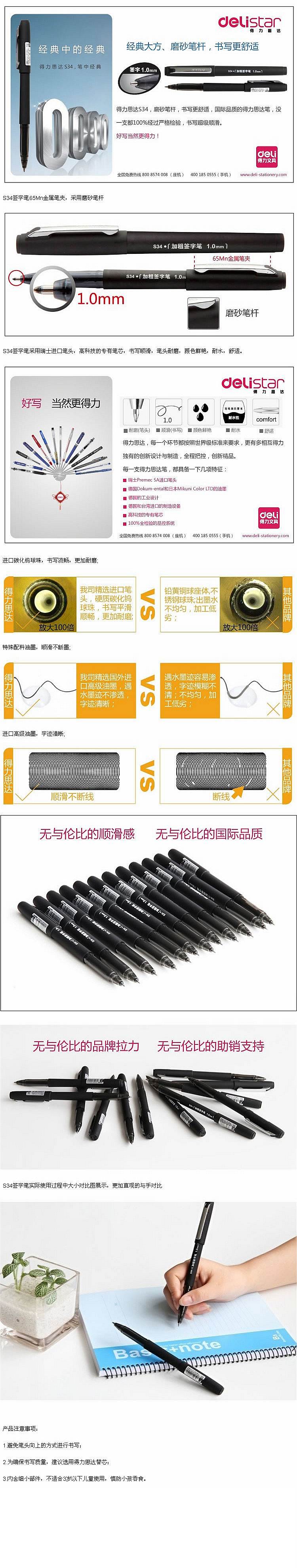 得力S34加粗签字笔1.0mm黑色12支/盒 自营