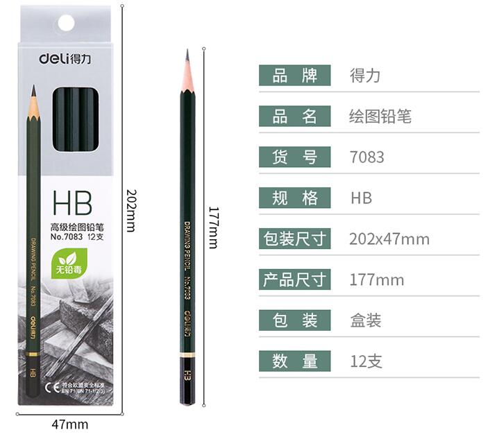 得力deli7083安全高级石墨铅芯素描绘图HB铅笔/学生铅笔12支/盒 自营