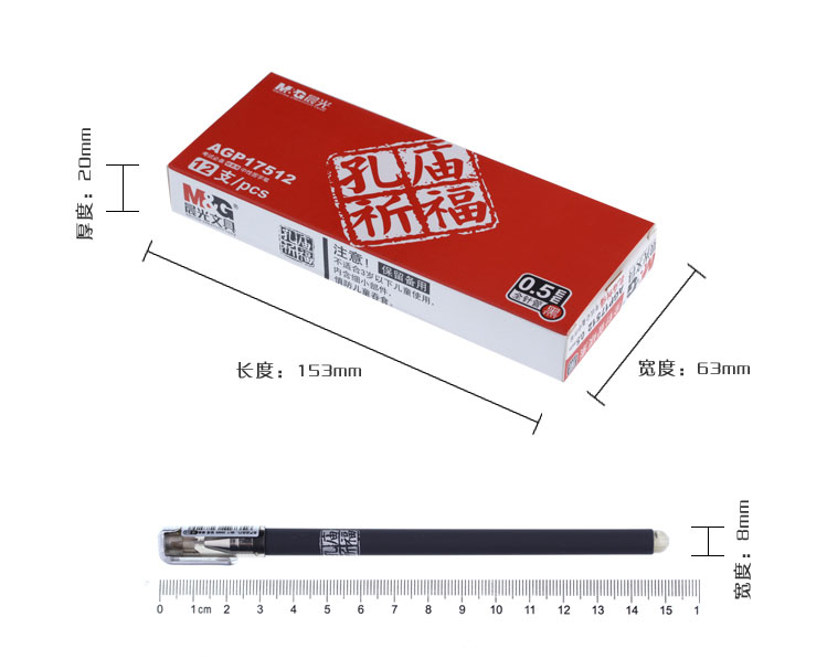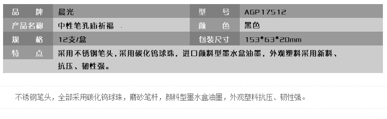 晨光AGP17512考试全针管中性笔签字笔水笔0.5mm12支装黑色 自营