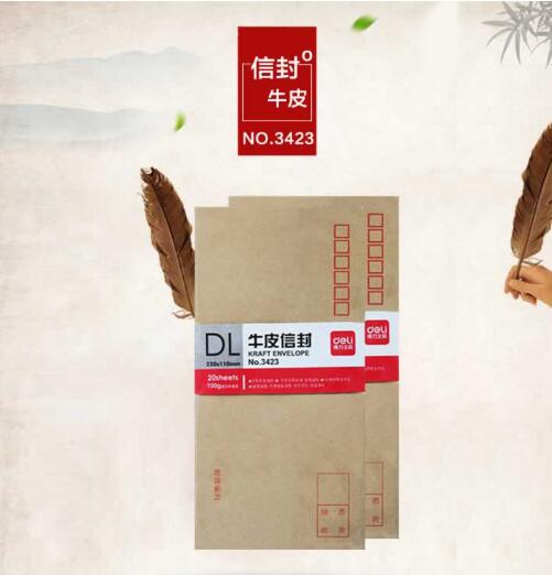 得力3423牛皮信封(米黄色)-5号(20个/包) 自营