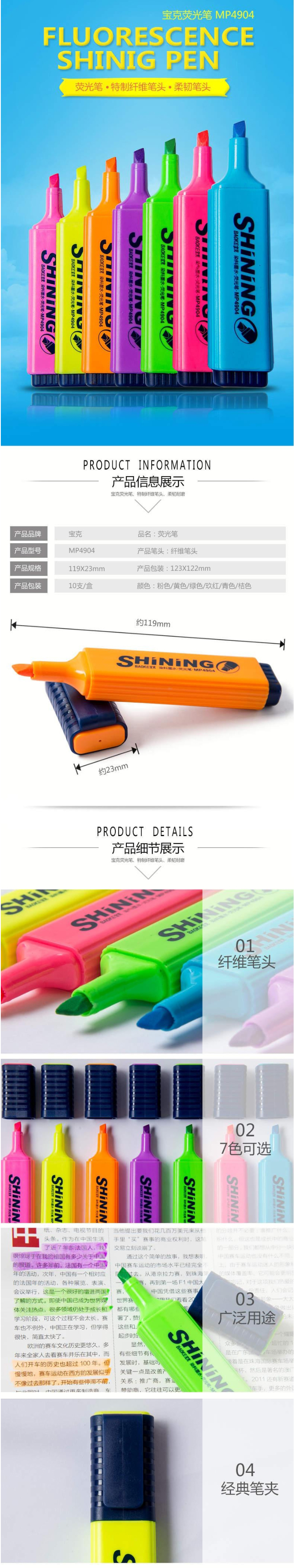 宝克MP4904荧光笔橙色10支/盒 自营
